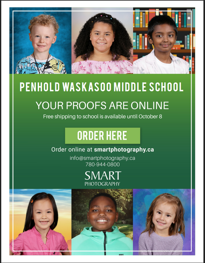 School Photo Day will be on Sept 23rd! Order in 3-6 business days at smartphotography.ca